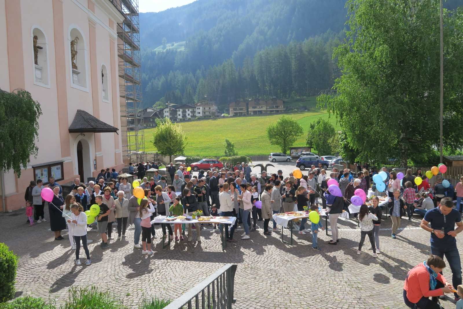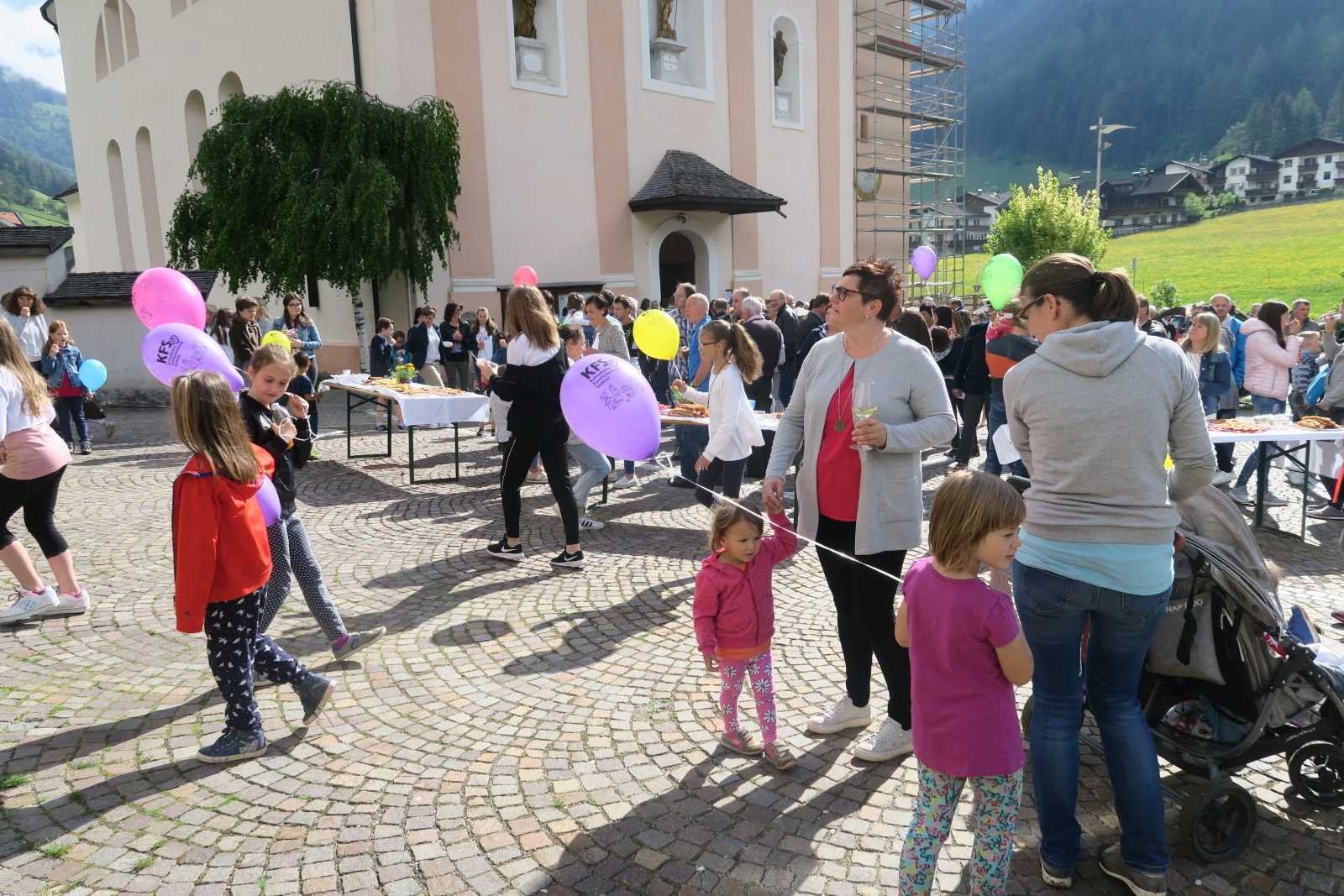 Hände stärken, Hände leiten, Hände fangen auf und stützen einander: In den 30 Jahren, die es die Zweigstelle St. Johann bereits gibt, haben viele verschiedene Hände mitgeholfen, sei es in der Gruppe, wie auch im Dorfleben. Es wurden neue Brücken gebaut, alte renoviert und wieder in Stand gesetzt. Einige haben neuen Schwung hereingebracht und ganz viele haben Spuren hinterlassen, die noch heute den Weg weisen. Derzeit ist Zweigstellenleiter Kurt Gasteiger mit seinem jungen und motivierten Team auf dem Weg, die Familien in der Dorfgemeinschaft zu unterstützen. Die Zweigstelle ist in diesen 30 Jahren zu einem Ort des Austauschs, der Weiterbildung, der Gemeinschaft und der Freude geworden, der nicht mehr wegzudenken ist. Zum Festgottesdienst zu 30 Jahren St. Johann waren nicht nur zahlreiche Familien, sondern auch Vertreterinnen aus Gemeinde und der KFS-Zentrale in Bozen gekommen. Beim anschließenden Buffet auf dem Kirchplatz überreichten Anna Oberschmied aus der KFS-Landesleitung und Lissi Gabrielli, Zweigstellenbetreuerin im KFS-Büro der Zweigstelle ein kleines Geschenk.