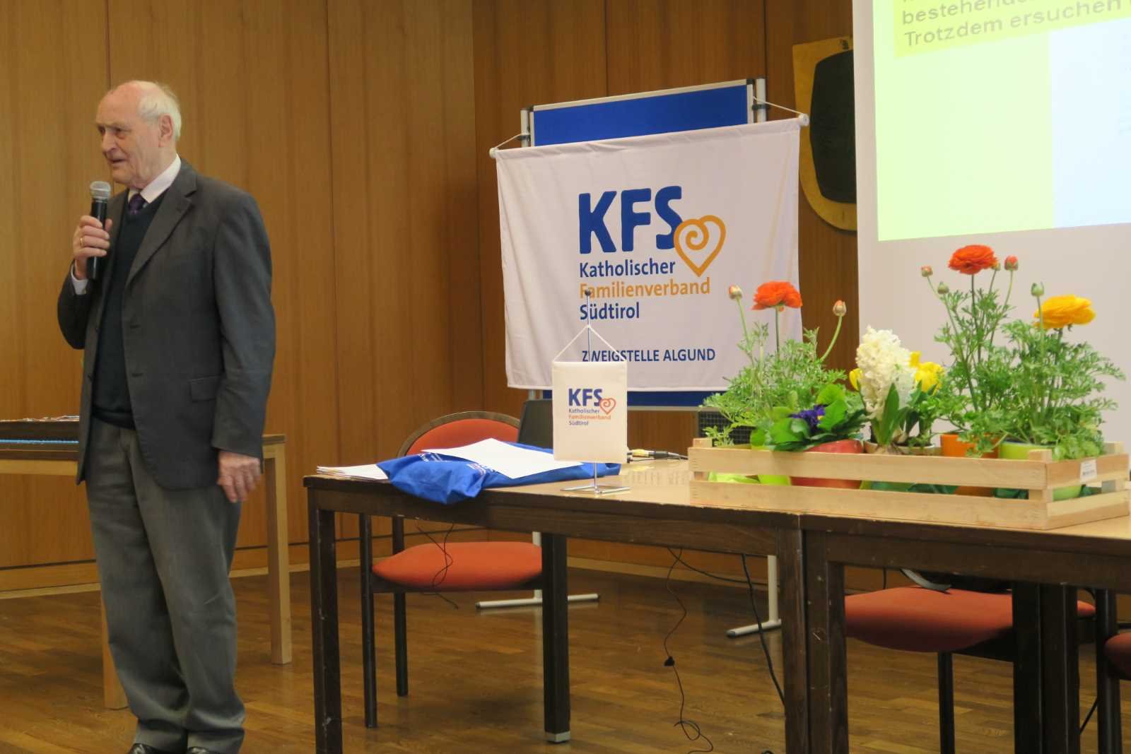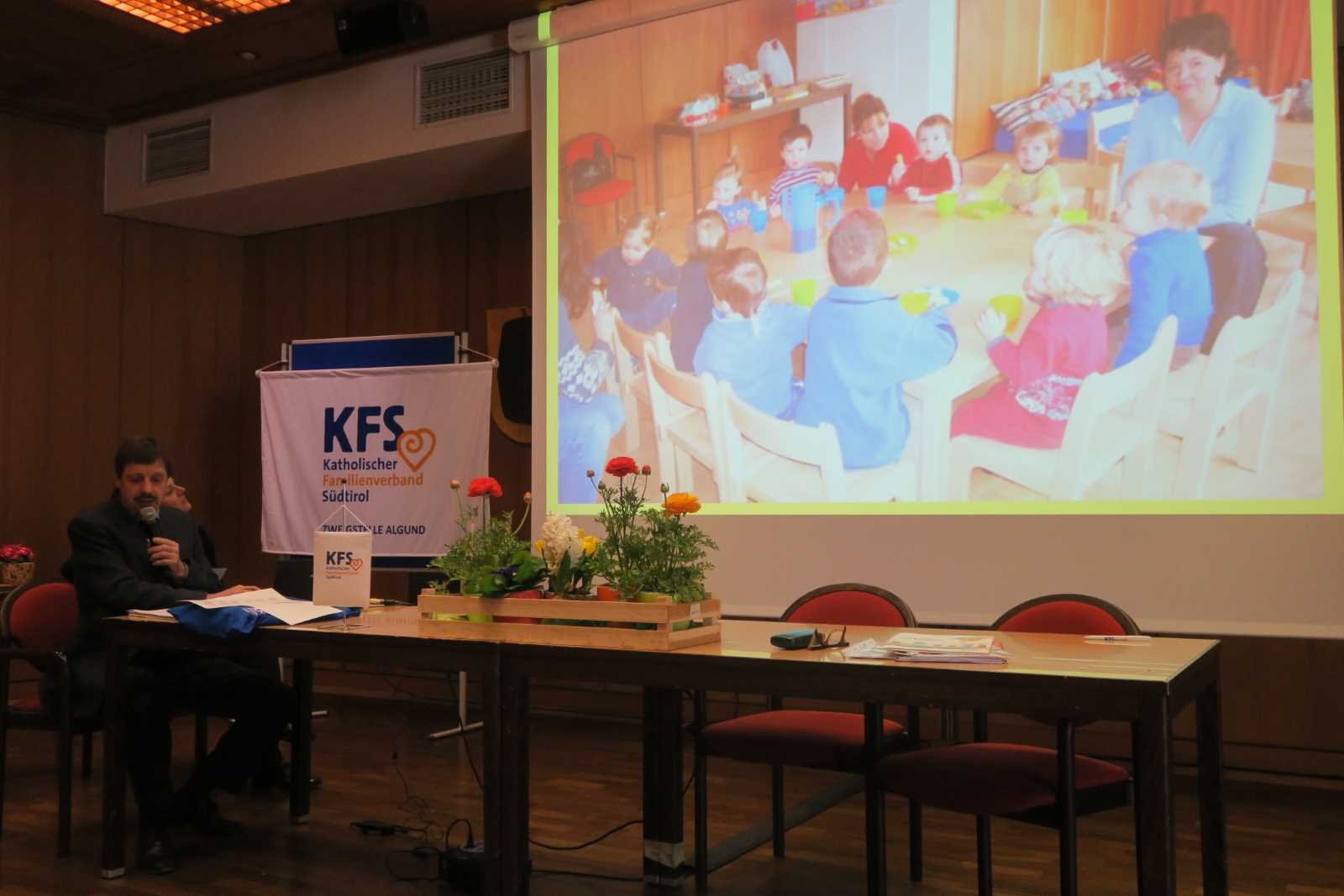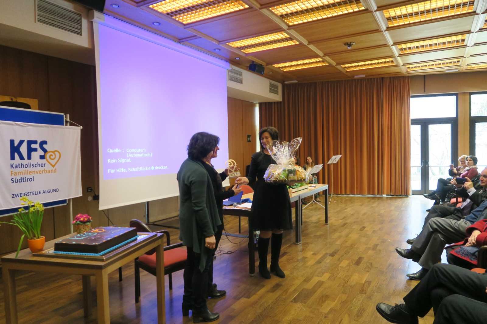 "Wenn es in der Familie passt, dann hat die Gemeinde keine Probleme, das Land und auch der Staat nicht", erklärte Bürgermeister Ulrich Gamper, anlässlich des Festaktes. Der KFS-Algund war schon seit jeher bemüht, sich aktiv ins Dorfleben einzubringen. Es gibt kaum ein großes Projekt in der Gemeinde, bei dessen Verwirklichung die Zweigstelle nicht mitgeredet und die Anliegen der Familien nicht vertreten hätte. Sowohl beim Kirchenbau als auch beim Bau des neuen Altenheimes hatte sie eine wichtige Stimme. Der Familienverband setzte sich außerdem dafür ein, dass der Sportplatz für alle offen sein sollte und organisierte die ersten Schülerlotsen im Dorf. Seit 2006 gibt es die Spielegruppen und auch die Sommerbetreuungswochen bieten jedes Jahr spanndende Abenteuer und Erlebnisse für die Kinder im Einzugsgebiet. Seit der Gründung bis ins Jahr 2013 war Algund eine der wenigen Zweigstellen, in der sich vor allem Männer im Ausschuss einbrachten. Mittlerweile ist die Zweigstelle in weiblicher Hand.