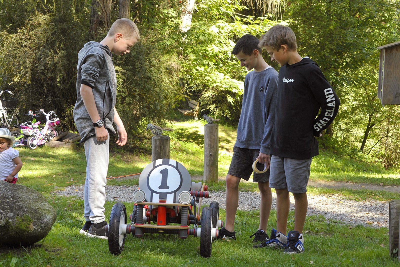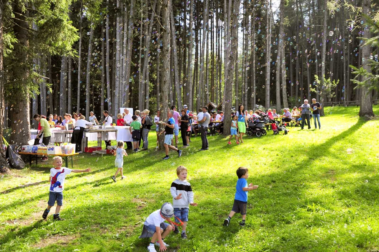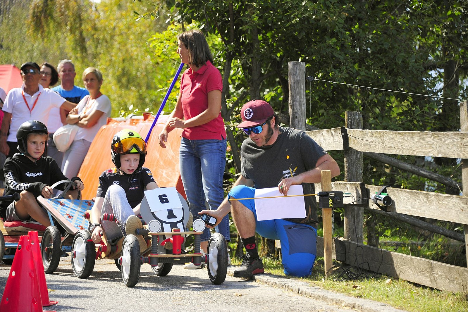 Nach dem Gottesdienst gab es auf dem Kirchplatz einem Umtrunk. Auch KFS-Präsidentin Angelika Mitterrutzner war nach Reischach gekommen, um der Zweigstelle zu gratulieren. Ab 11 Uhr waren alle zu einem Familienfest bei der Kneippanlage eingeladen. Dort konnten die Familien bei einem Triathlon aus verschiedenen Spielen, wie „Straßnlattl schießen“, ihre Teamfähigkeit unter Beweis stellen. Höhepunkt war das Seifenkistenrennen um 14 Uhr. Die Teilnehmer stellten mit ihren selbstgebauten Seifenkisten ihre Fahrkünste unter Beweis und so mancher legte eine riskante Fahrt hin.