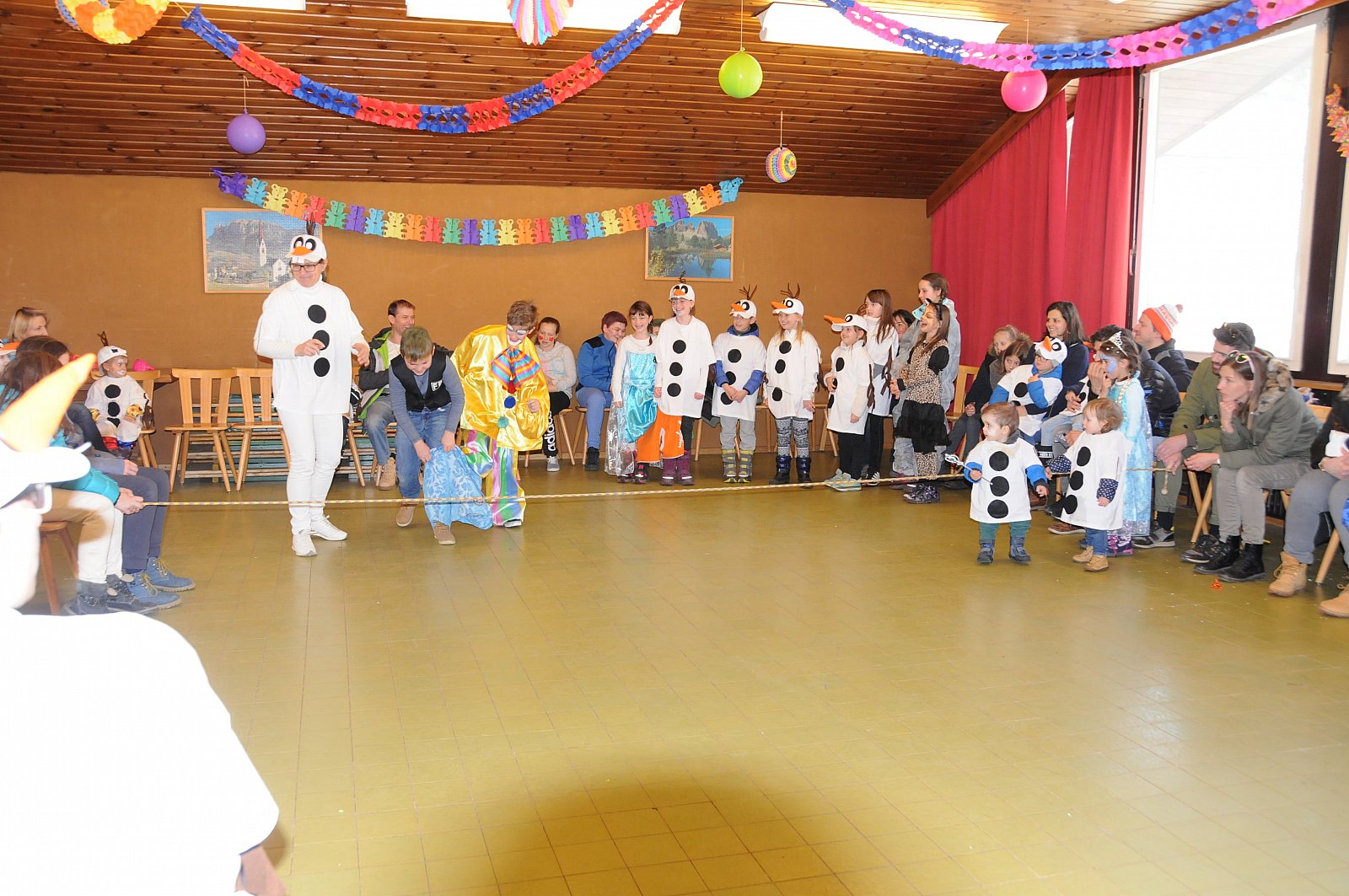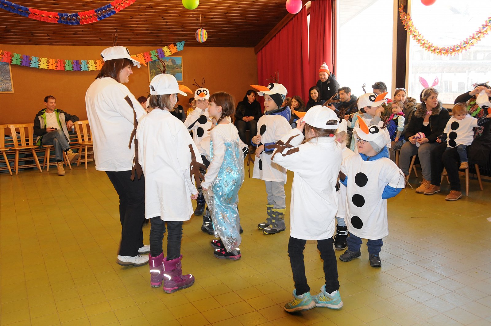 Am Samstag, den 25.02.2017 fand diesjähriger Faschingsumzug statt. Unser Thema dieses Jahr: „Die Eiskönigin“. Im Vorfeld bastelten wir mit allen interessierten Kindergarten- und Grundschulkindern den lustigen Schneemann Olaf. Auch das Rentier Sven durfte nicht fehlen. Einige Mädchen kamen als Anna oder Elsa zu unserem Umzug. Begleitet wurde unser Umzug von der Musikkapelle Winnebach, die einheitlich zum Thema „Ab in den Süden“ auftraten. Eis trifft auf Sonne, Strand und Meer. Sehr originell.