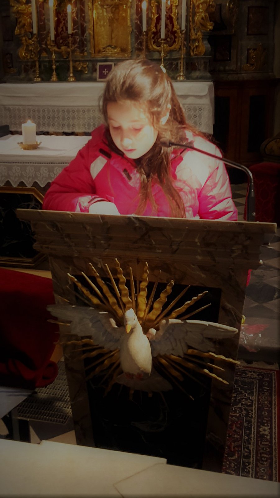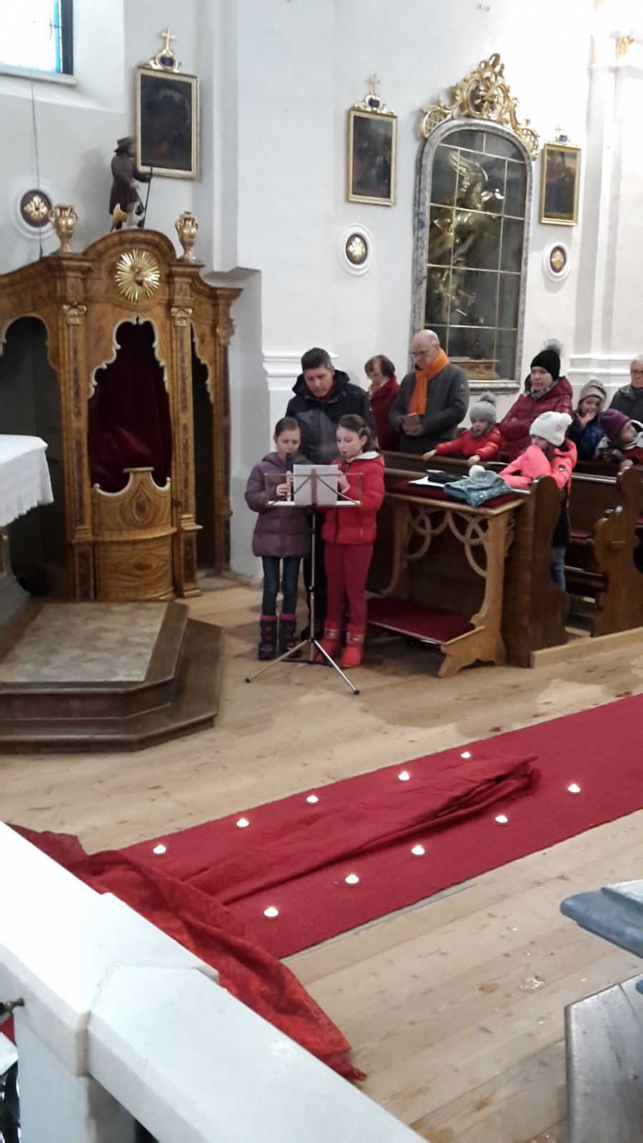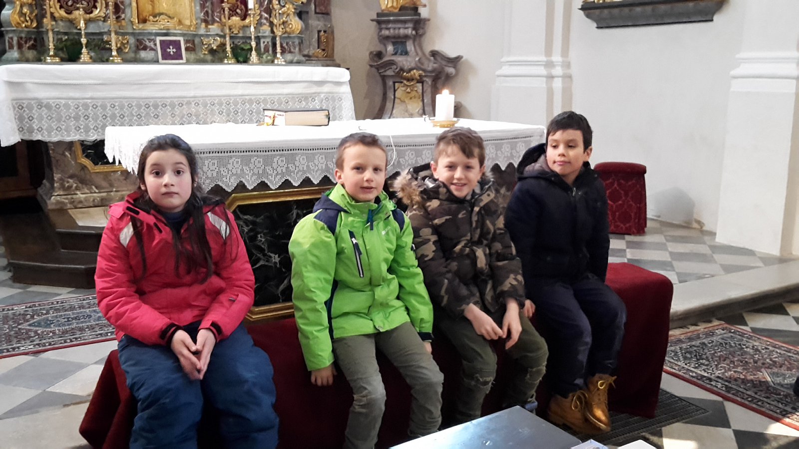 Am 23.02.2018 gestaltete der KFS Winnebach mit den Erstkommunionkindern den alljährlichen Kinderkreuzweg. Margareth, unsere Zweigstellenleiterin stellte den Kreuzweg zusammen. Die Erstkommunionkinder Damian, Julian und Raffael sowie Emily aus der zweiten Klasse lasen abwechselnd zu jeder Station den passenden Text. Gleichzeitig wurde immer wieder von einem anderen Kind das passende Bild zum Leidensweg Jesu auf ein Kreuz aus Tüchern gelegt. Die Ministranten gingen mit dem Kreuz von Station zu Station. Für die musikalische Umrahmung sorgten Andrea und Sara auf ihren Blockflöten.