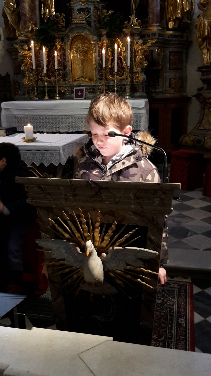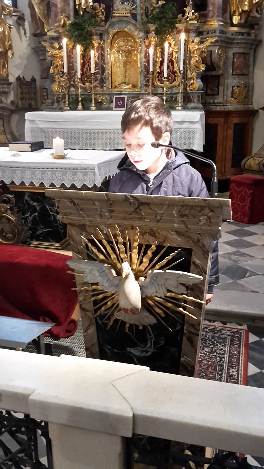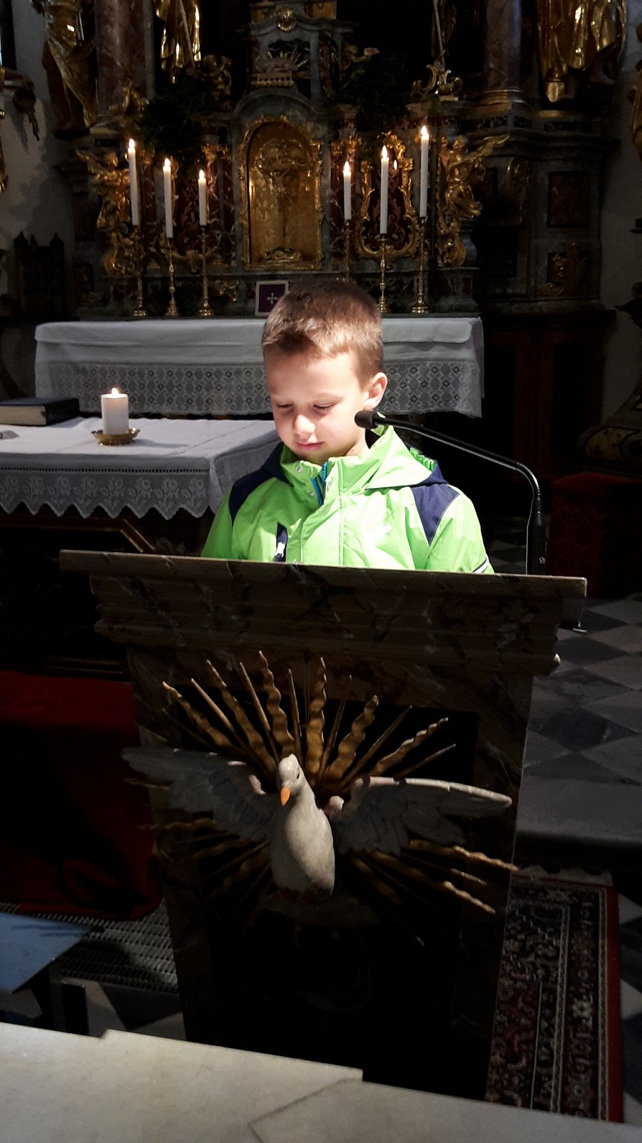 Am 23.02.2018 gestaltete der KFS Winnebach mit den Erstkommunionkindern den alljährlichen Kinderkreuzweg. Margareth, unsere Zweigstellenleiterin stellte den Kreuzweg zusammen. Die Erstkommunionkinder Damian, Julian und Raffael sowie Emily aus der zweiten Klasse lasen abwechselnd zu jeder Station den passenden Text. Gleichzeitig wurde immer wieder von einem anderen Kind das passende Bild zum Leidensweg Jesu auf ein Kreuz aus Tüchern gelegt. Die Ministranten gingen mit dem Kreuz von Station zu Station. Für die musikalische Umrahmung sorgten Andrea und Sara auf ihren Blockflöten.