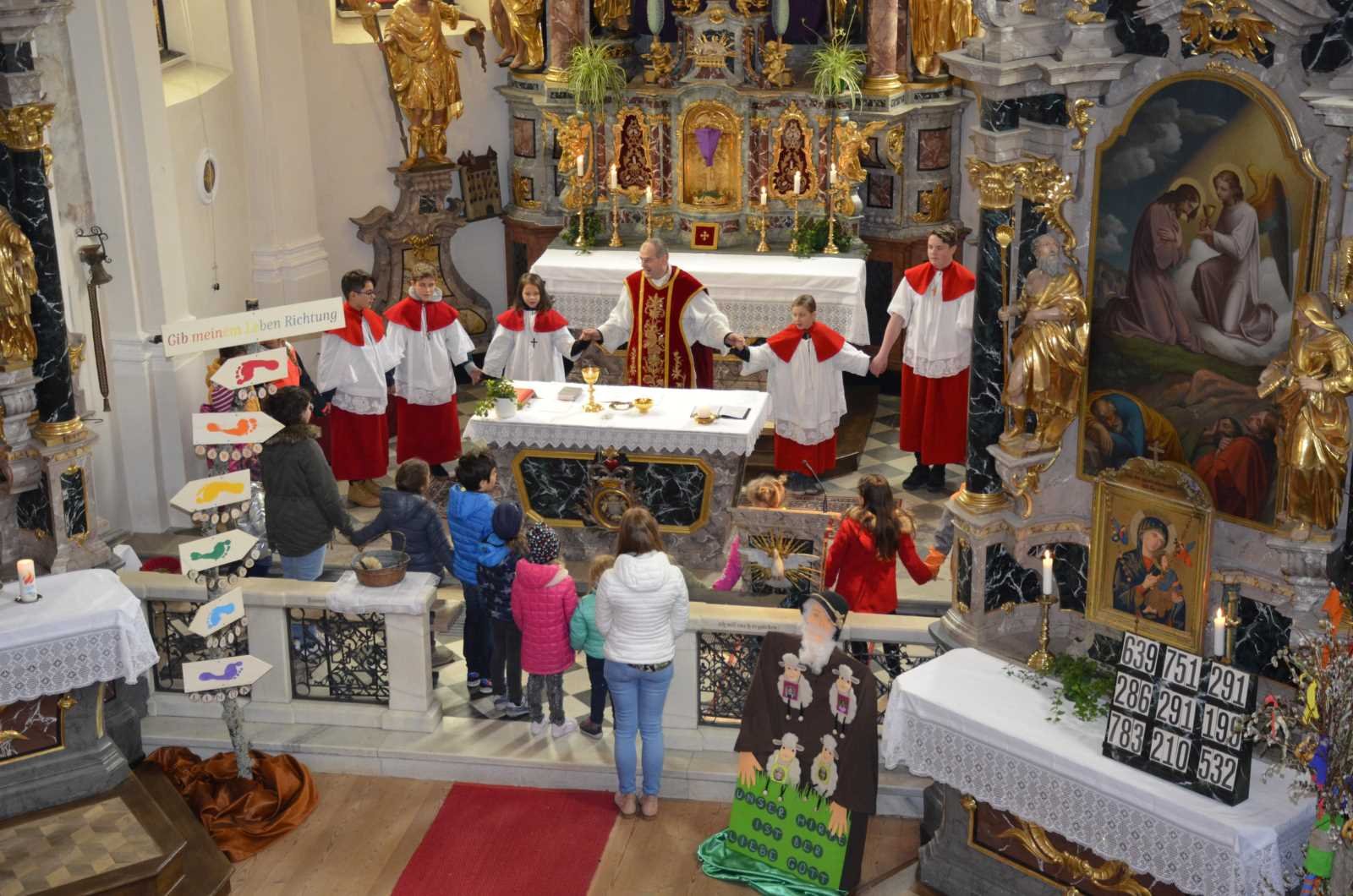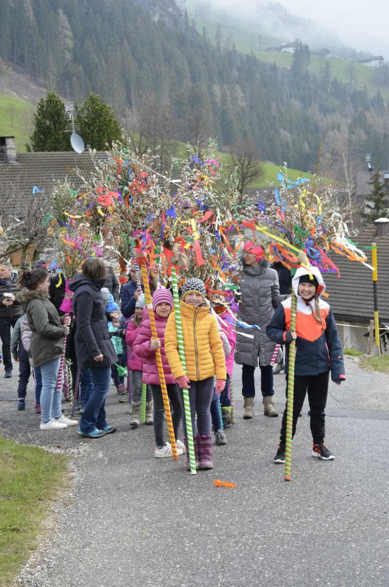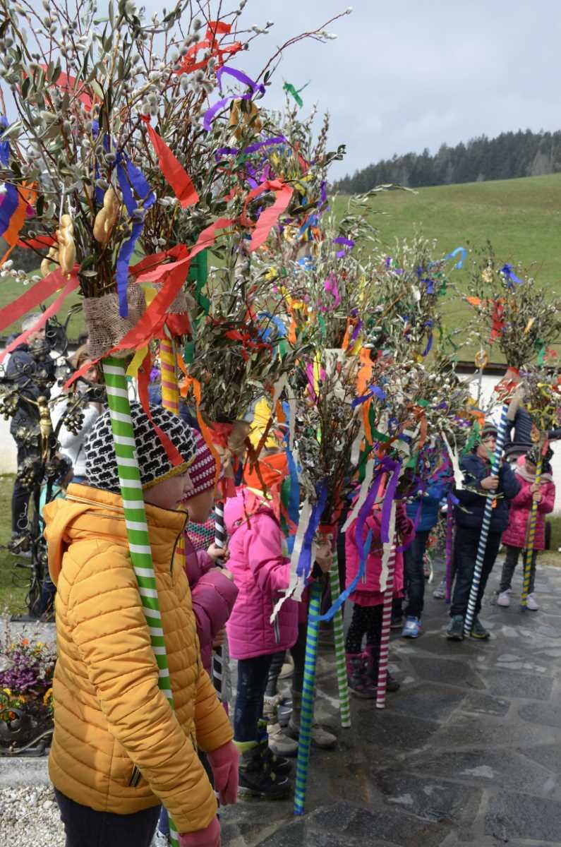 Am Samstag, den 13.04.2019 trafen wir uns beim Widum zum Palmbesenbinden. Mit viel Eifer und der Hilfe vieler Eltern war der Palmbesen bald gebunden. Anschließend wurde er noch mit farbigen Kreppbänder und Fastenbrezeln verziert. Am Palmsonntag trafen wir uns vor dem Widum und starteten die Prozession zur Kirche. Dabei sang der Kirchenchor von Winnebach. Vor der Kirche empfing uns Dekan Seehaus, segnete die Palmbesen und gemeinsam zogen wir in die Kirche zur Messfeier ein.