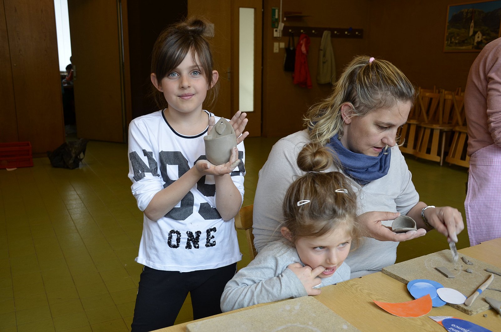 Am 06.04.2019 war Frau Anna Oberschmied aus Reischach bei uns zu Gast. Sie töpferte mit allen interessierten Kindern und Erwachsenen ein Weihwasserkrüglein. Das Interesse war groß und so konnten innerhalb zwei Stunden insgesamt 24 Krüglein angefertigt werden. Frau Oberschmied brachte einige Exemplare mit und zeigte kurz vor, wie man es machen kann. Es stand aber jedem frei, sich an die Vorlagen zu halten oder sein eigenes Weihwasserkrüglein zu formen. Bis zum Schluss kamen viele unterschiedliche Krüglein dabei raus. Jetzt müssen sie nur noch mit der gewünschten Farbe glasiert und gebrannt werden und dann kann das Endprodukt bewundert werden.